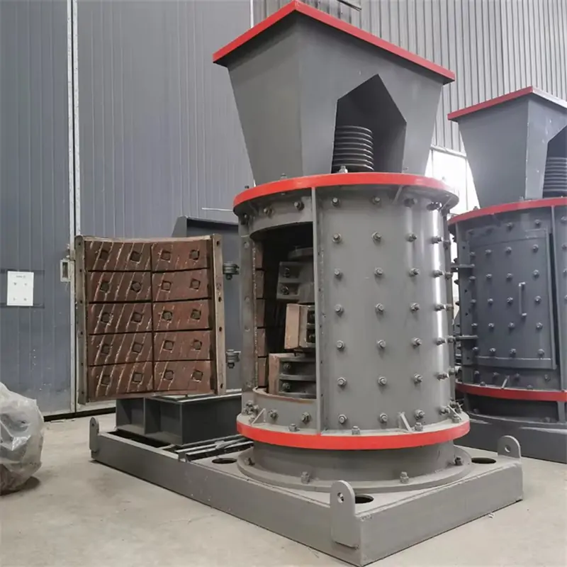 The working principle of the vertical shaft compound crusher is to accelerate the material through the high-speed rotating rotor. After the material hits the plate hammer on the rotor, it is thrown at high speed to the liner or other counterattack device in the crushing chamber, and is impacted and squeezed again, thereby achieving material crushing. Since the crushing process adopts multiple action modes such as impact, extrusion and grinding, the crushing effect is more uniform and the particle size is finer. The unique design of the equipment enables the material to be fully crushed in a shorter time, and can effectively reduce the phenomenon of over-crushing, so that the particle size and shape of the final product are stable.